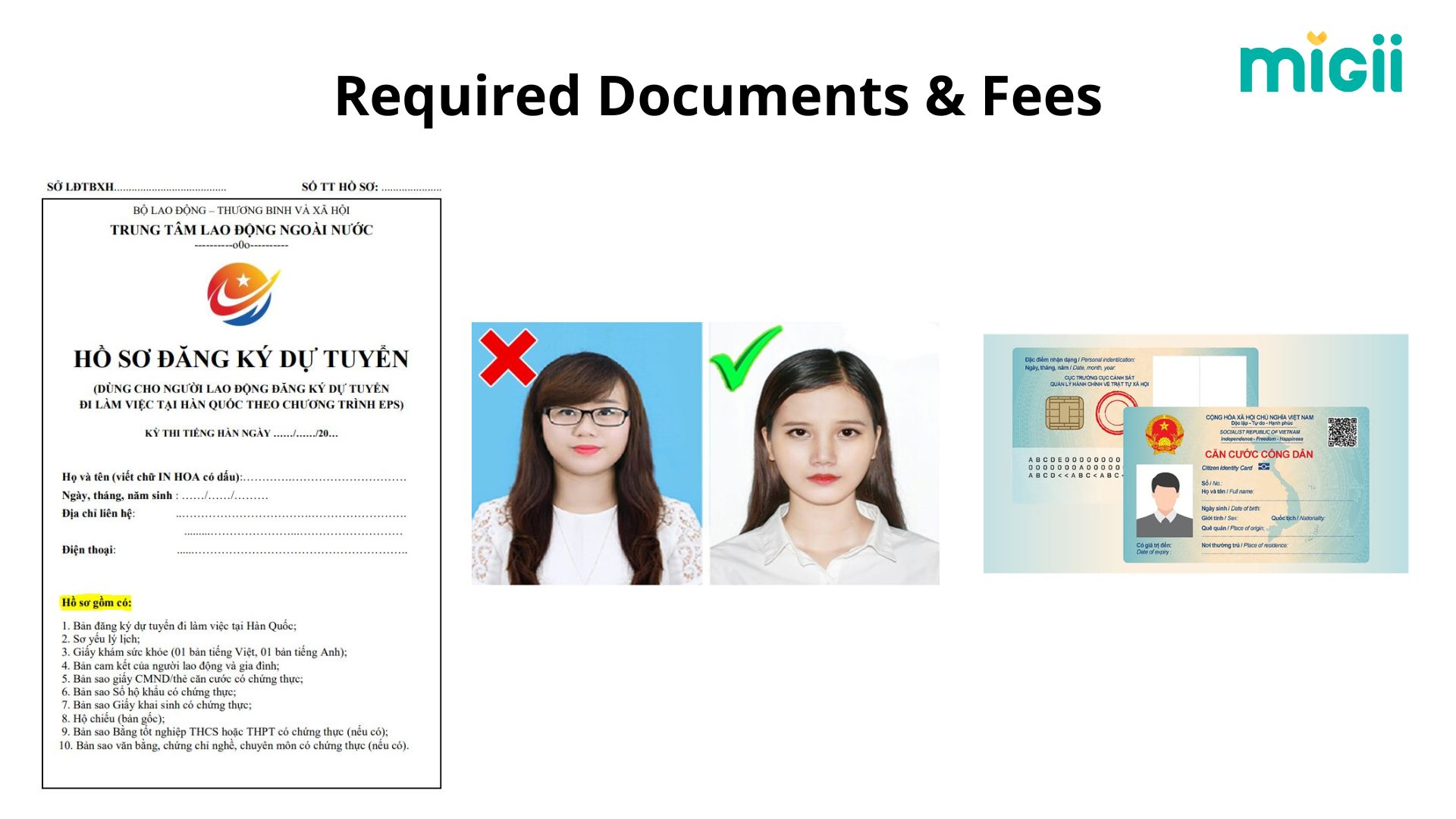 - Other requirements: White background, dark shirt. Full name, date of birth, and ID number must be clearly written on the back of the photo.
